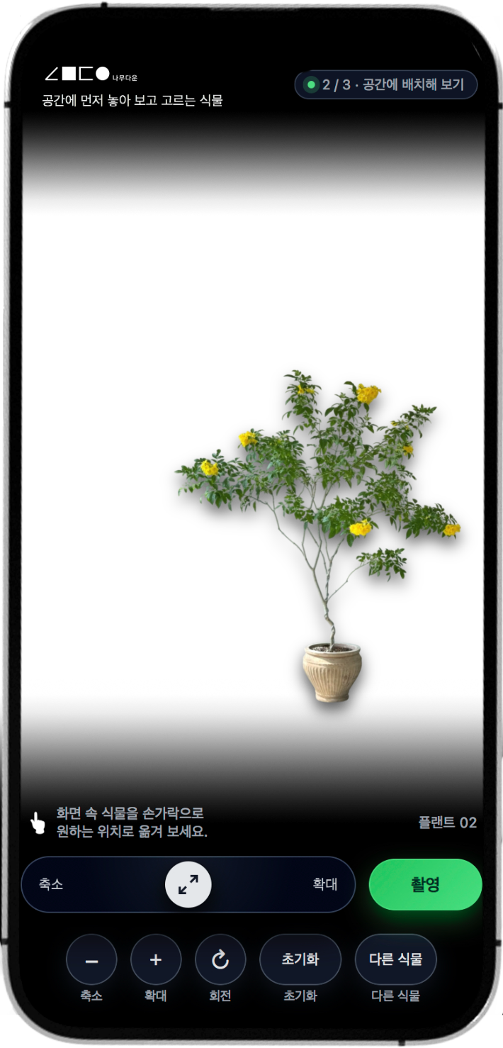 실시간 카메라를 켜거나, 이미 찍어 둔 사진 위에 식물을 올려둘 수 있어요.